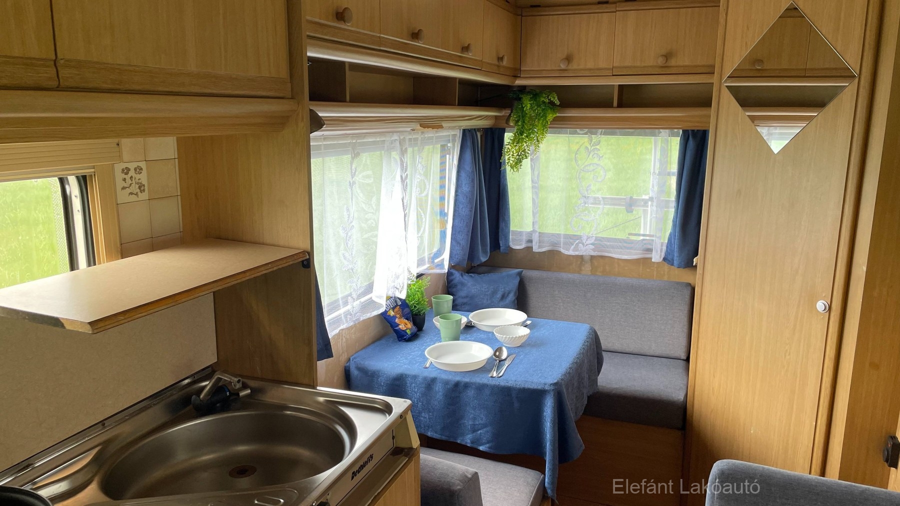 - kempingasztal, székek, kültéri szőnyeg – Ezeket külön kérheted a lakóautóhoz, jó időben kényelmesebb kint üldögélni a szabadban